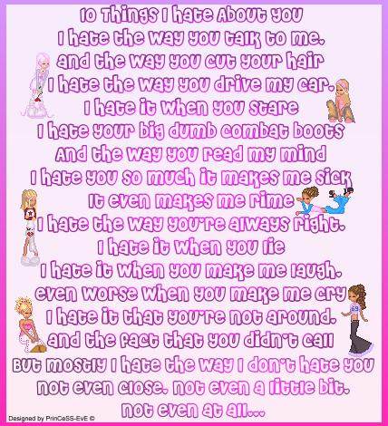 ! * ! Roses are red, grass is green, kiss ma ass coz am the queen! So all u hoes who think ur cool, kiss ma ass coz BITCHES rule ! * !